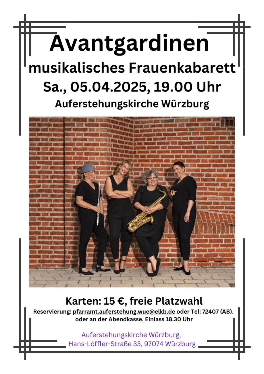 Reservierung: pfarramt.auferstehung.wue@elkb.de oder Tel: 0931 / 72 407 (AB) oder an der Abendkasse