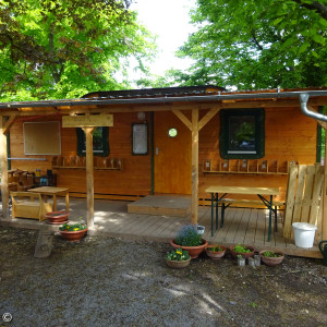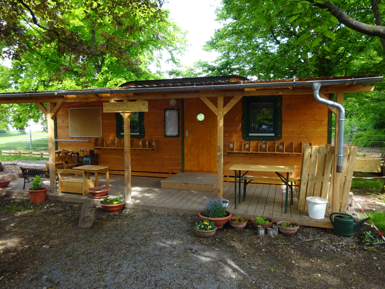 Die Naturgruppe befindet sich auf dem Außengelände der Einrichtung. Hier steht den Kindern ein Bauwagen zu Verfügung, der als Rückzugsort genutzt wird.